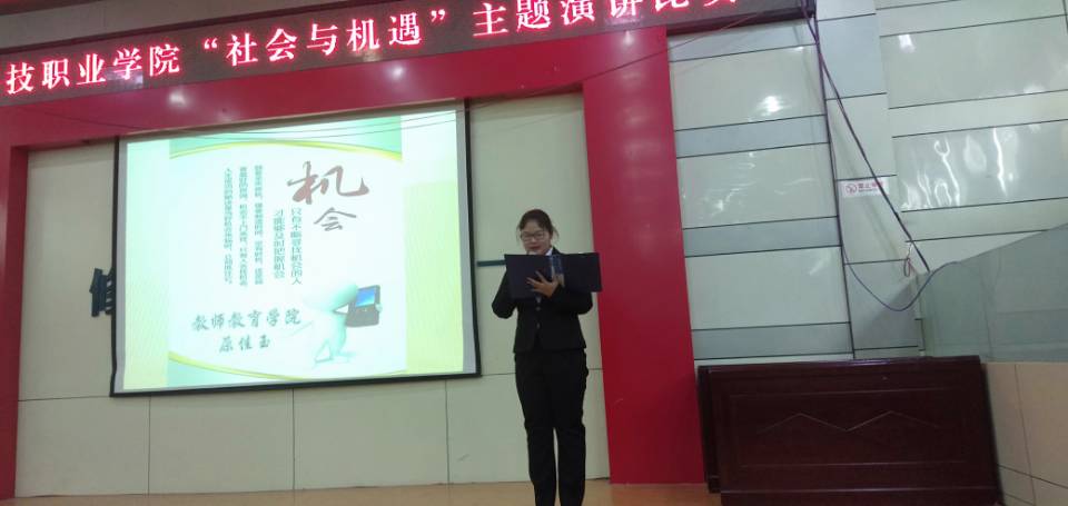 每个人都将步入社会,社会中的机遇随处可见,如何在复杂的社会中发现机遇、把握机遇、抓住机遇,是我们每个人都应该考虑并且重视的。在社会中去挖掘去发现,你会看见很多近在咫尺的机遇等待你去把握。更何况当今社会人才的竞争日趋激烈,学会在社会中抓住机遇就是迈出成功的第一步。为了让学生认识到机遇的重要性,并学会如何面临社会中的种种机遇,MG冰球突破官网网站特此在一号报告厅举办了本次“社会与机遇”主题演讲比赛。本次比赛的评委有MG冰球突破官网网站团总支书记许卫华,MG冰球突破官网网站社联主席管锡元、学生会主席刘华壮、副主席田润东等。