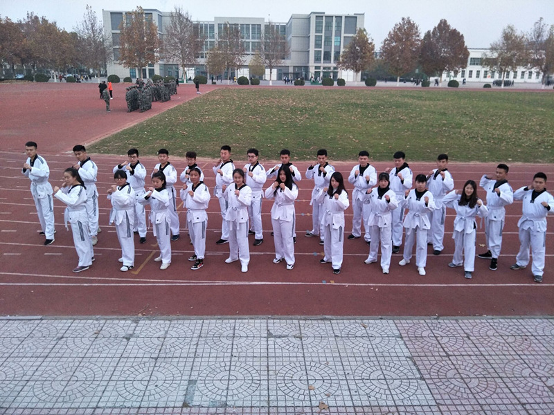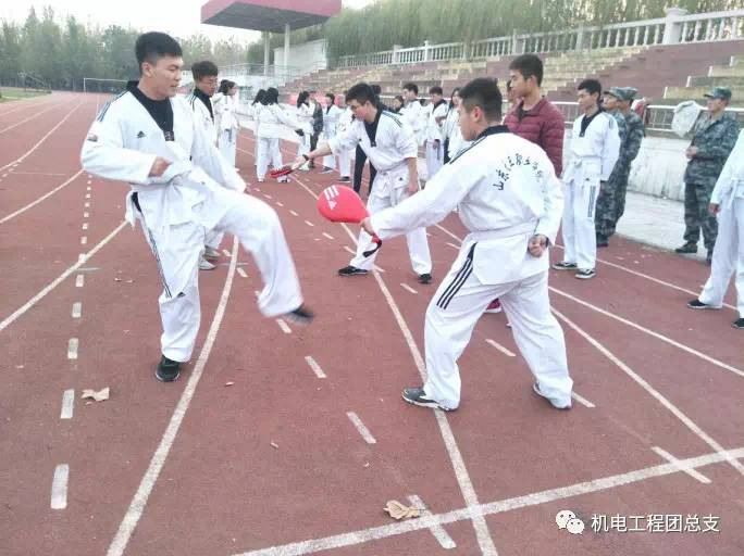 培养同学们的跆拳道水平,提高学生自我保护能力。感受跆拳道的魅力和快乐,促进学生身心发展。丰富大学课余生活,激发学生对生活和运动的热情,使大学生活变得丰富有意义;促进社团成员之间的内部交流,以比赛的形式增进社员之间的友谊,加强学生的体质健康。来自跆拳道社团内36名社员,在比赛开始前参赛选手自行组织热身。在操场上留下了一条白色别致的风景线。