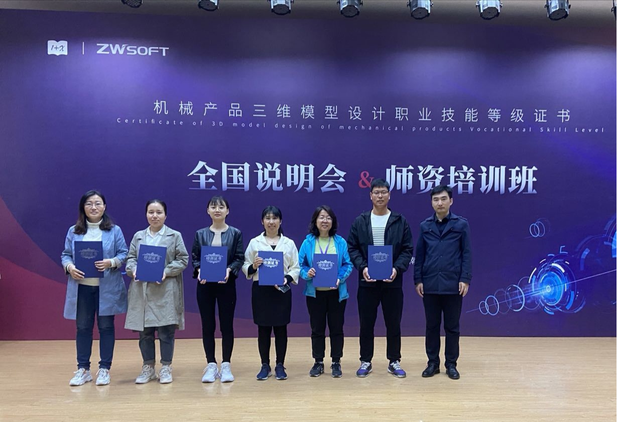 此次培训邀请了郭文星教授对“机械产品三维模型设计 1+x标准”进行了解读,同时邀请了张方阳博士、李梁京等多位教授分析了“基于《机械产品三维模型设计书证融通》的思考与探索”、“赛证融通人才培养模式创新与实践”等内容,对“1+x证书”工作的开展具有较强的指导性。
