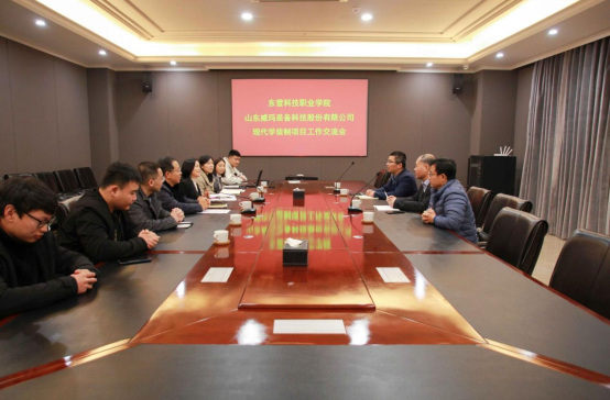 11月25日,冰球官网党委委员、副校长焦新伟一行到山东威玛装备科技有限公司,就机械制造专业现代学徒制项目建设及学生在企实习进行调研,落实下一步校企合作、现代学徒制项目培养具体事宜,山东威玛装备科技有限公司党支部书记孙哲,人力资源部总经理王其花进行了热情的欢迎和接待。