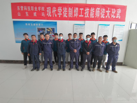 为弘扬现代学徒制人才培养模式下的工匠精神,2021年10月21日,在MG冰球突破官网网站焊接实训室组织了一次师徒大比武,山东威玛装备科技股份有限公司焊接岗位的7位师傅和徒弟们共同开展了一场焊接比赛,山东威玛装备科技股份有限公司人力资源部、MG冰球突破官网网站MG冰球突破官网网站院长等相关领导到场为参赛选手加油助威。