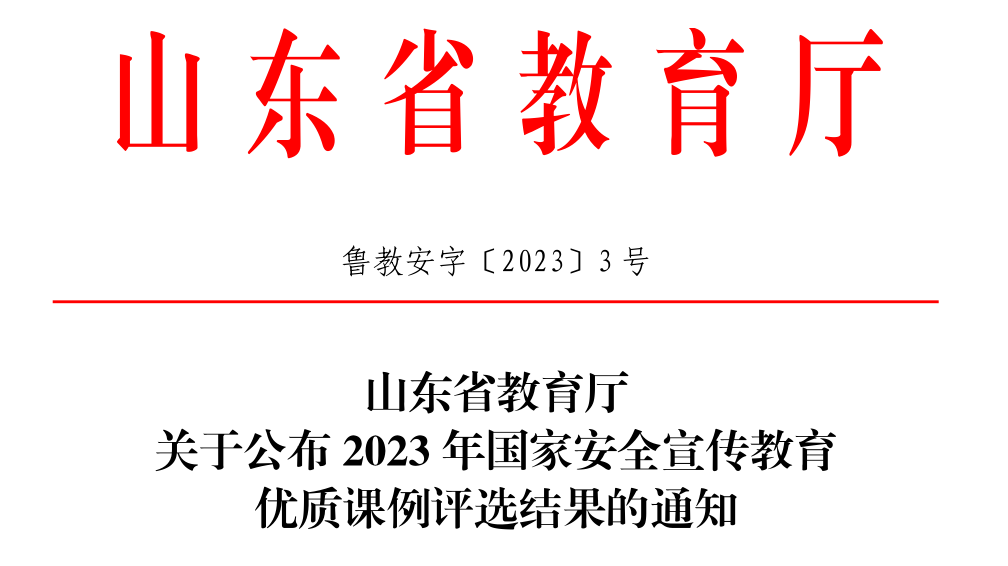 近日,山东省教育厅发布《关于公布2023年国家安全宣传教育优质课例评选结果的通知》,冰球官网王宗玲、安丰金老师的作品《国家安全、人人有责》荣获高校组一等奖。